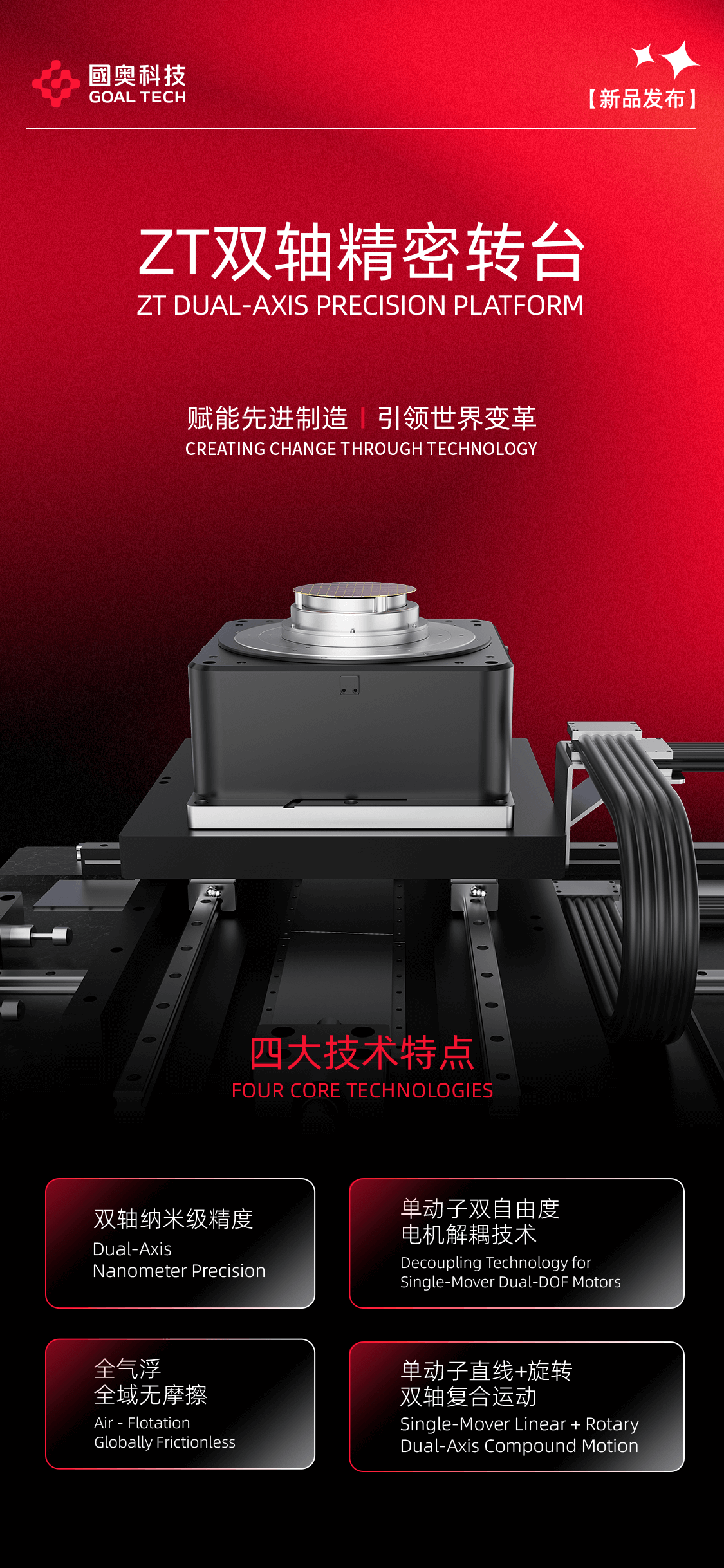 同轴双自由度集成、纳米级精度、全气浮无摩擦 —— 国奥科技自主研发的ZT双轴精密转台(GAS-ZT-10-120)正式发布,打破国际巨头对高端精密运动部件的垄断,为半导体及高精密制造领域提供 “自主可控” 的高端国产化解决方案。