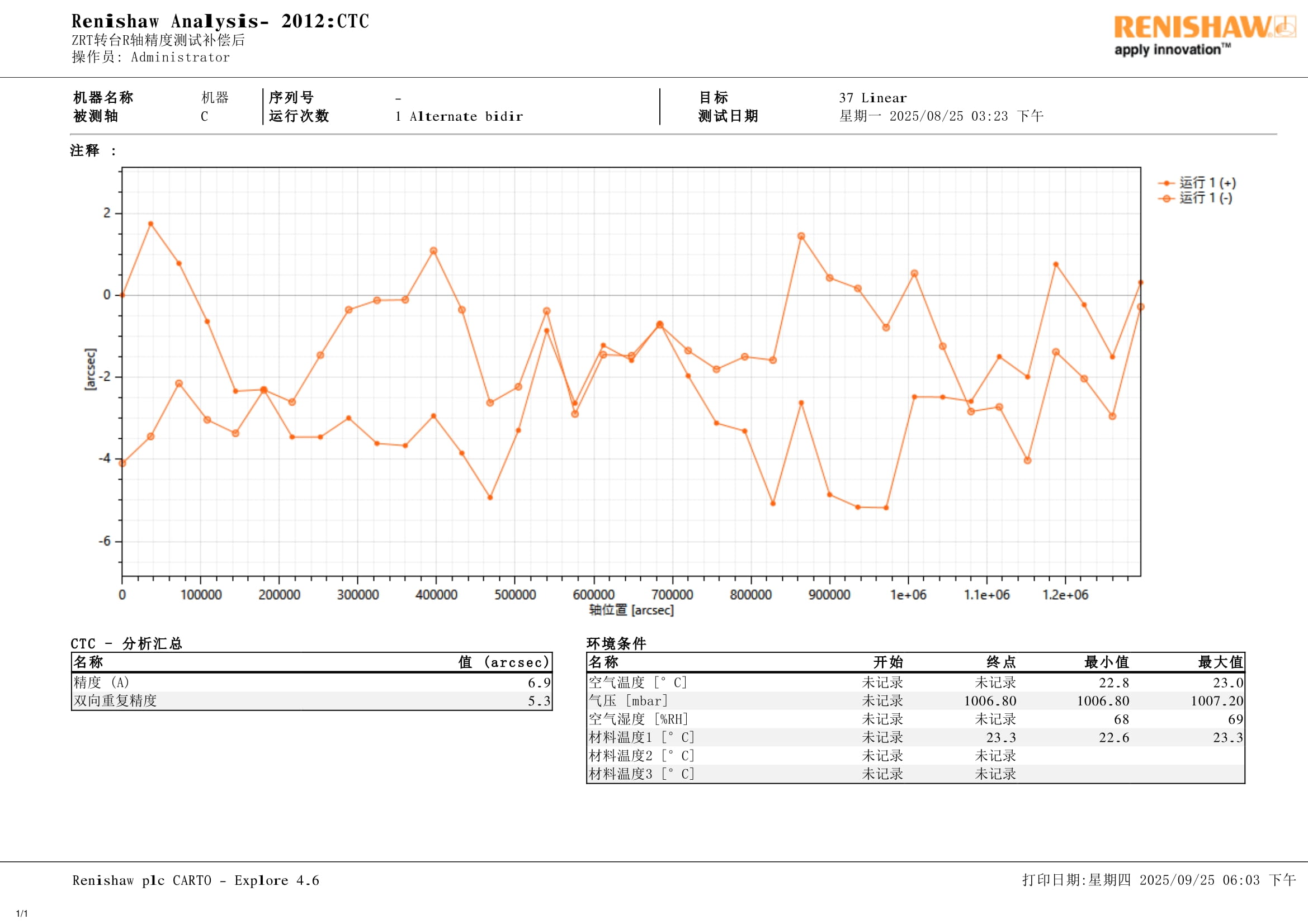 T轴重复定位精度:±2.65 arcsec ≈ ±0.00074°